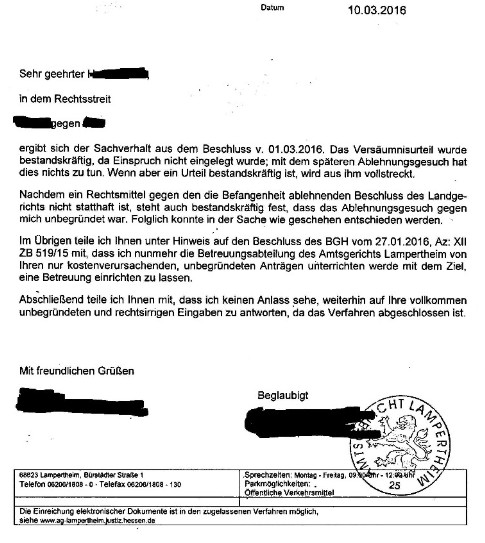 Hier ein Beispiel, das direkt über die Justiz lief: